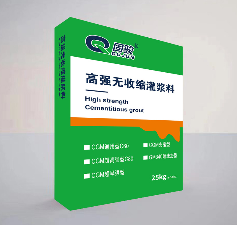 高强无收缩灌浆料是高流态、高强骨料、高强度等特点在高强灌浆领域应用广泛。产品采用PO52.5水泥作为粉料基础,加入高强活性组分,辅以多种防泌水、防离析外加剂做到了与水结合后,视觉状态和使用状况俱佳的形式,其成型构件强度高,稳定性好,长期性耐久性均可达到设计要求。